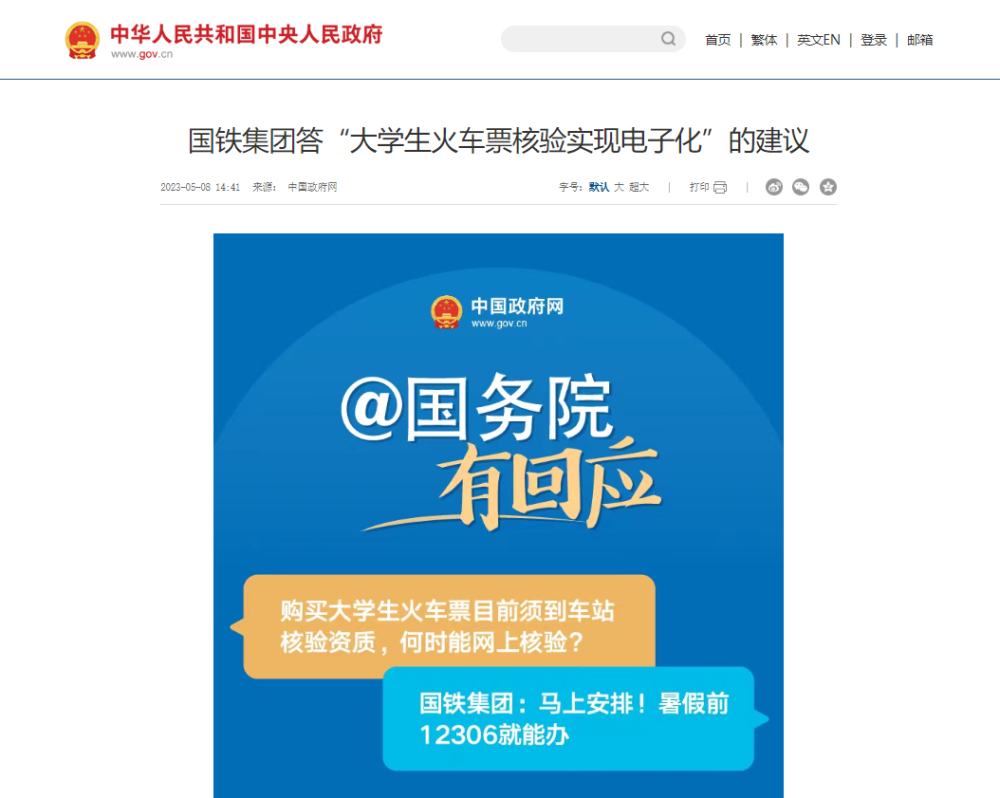 原标题:国铁集团答“大学生火车票核验实现电子化”的建议