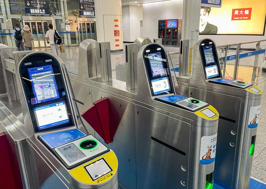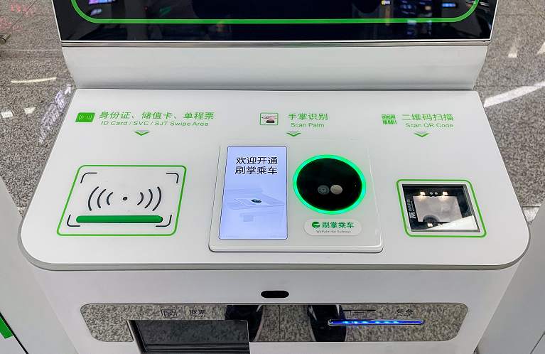随着刷掌乘车的开通,部分闸机通道也增加了刷掌乘车区域。乘坐地铁时,乘客只需要找到带有圆环标志的刷掌闸机,将掌心面对圆环内的识别区,就可以开始刷掌。完成识别后,圆环变为绿色,闸机便会自动打开。在出站之后,手机便会收到扣款的提示推送。