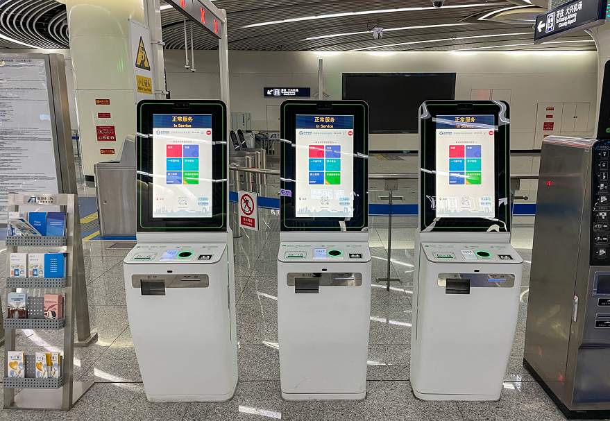 今天上午,北京日报记者在地铁大兴机场线草桥站发现,进站闸机外多出了几部新的自动售票机。和其他售票机有所不同,新的售票机屏幕更大,除了可以实现购票、充值、网上取票等常规操作之外,页面上多了一个“开通刷掌乘车”的选项。在屏幕下方,还多出了一个圆形的手掌识别区域,大小与手机无线充电器相似。