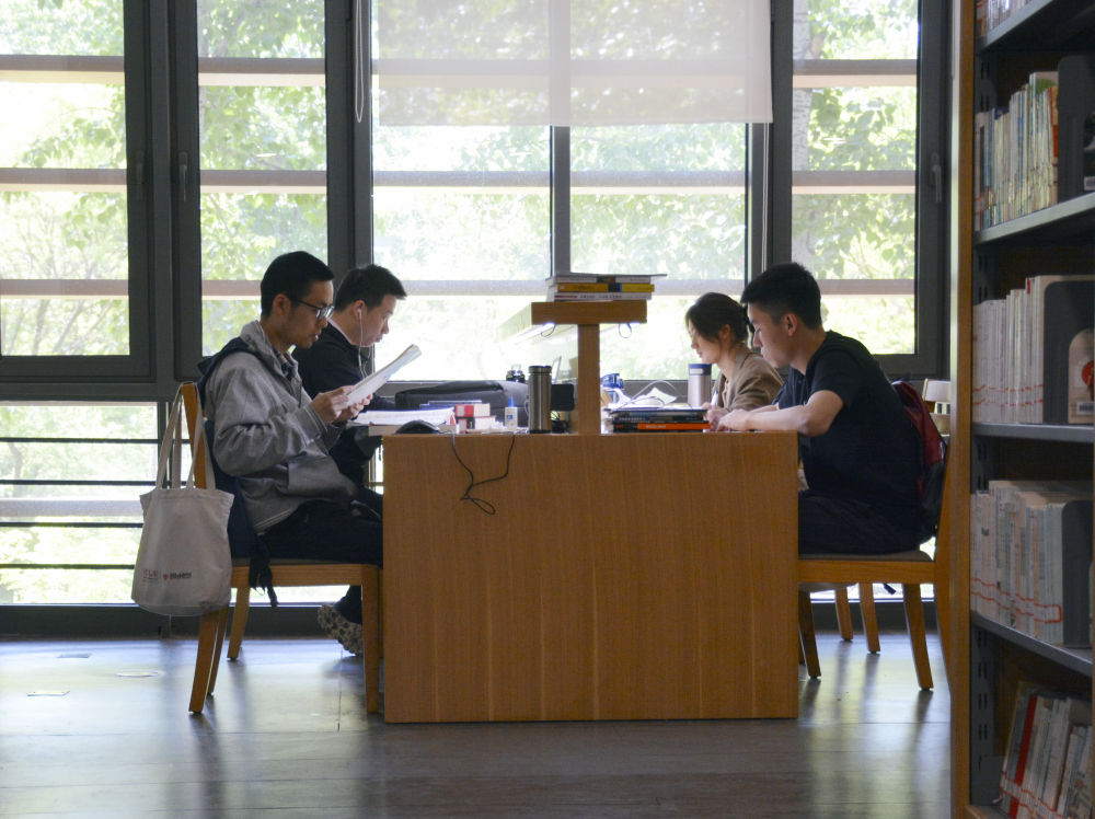 4月29日,在北京外国语大学图书馆,学生们利用假期读书“充电”。新华社发(姚远 摄)