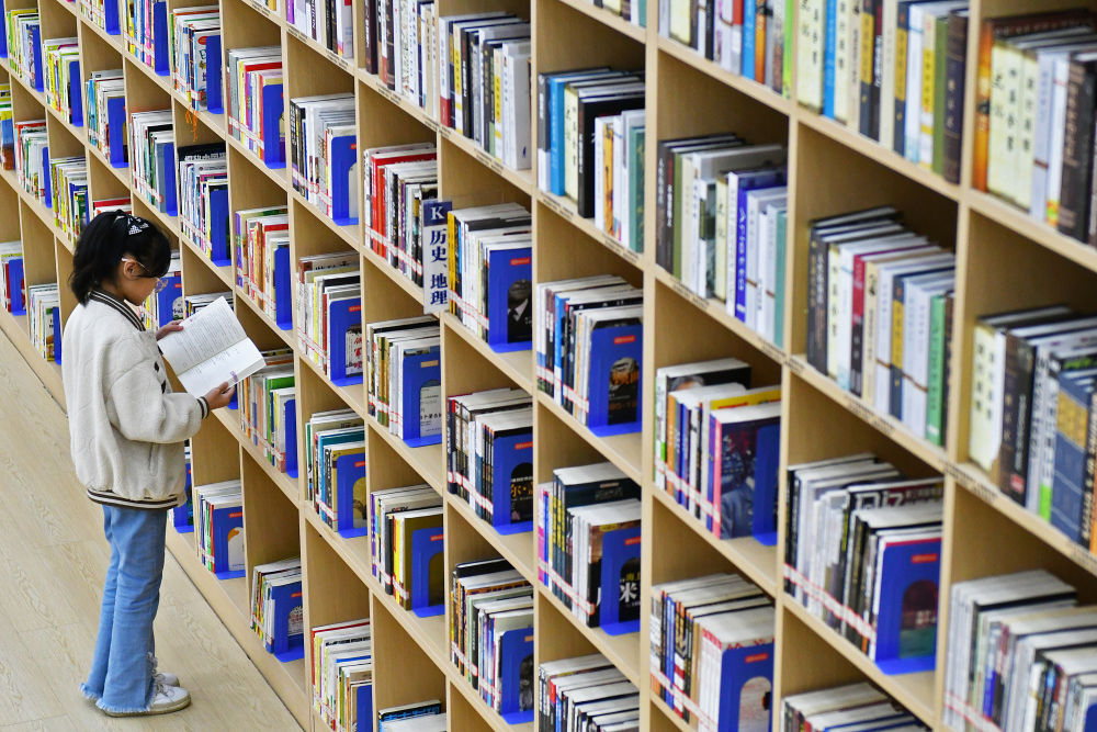 4月29日,小读者在山东省烟台市福山区图书馆阅读书籍。新华社发(孙文潭摄)