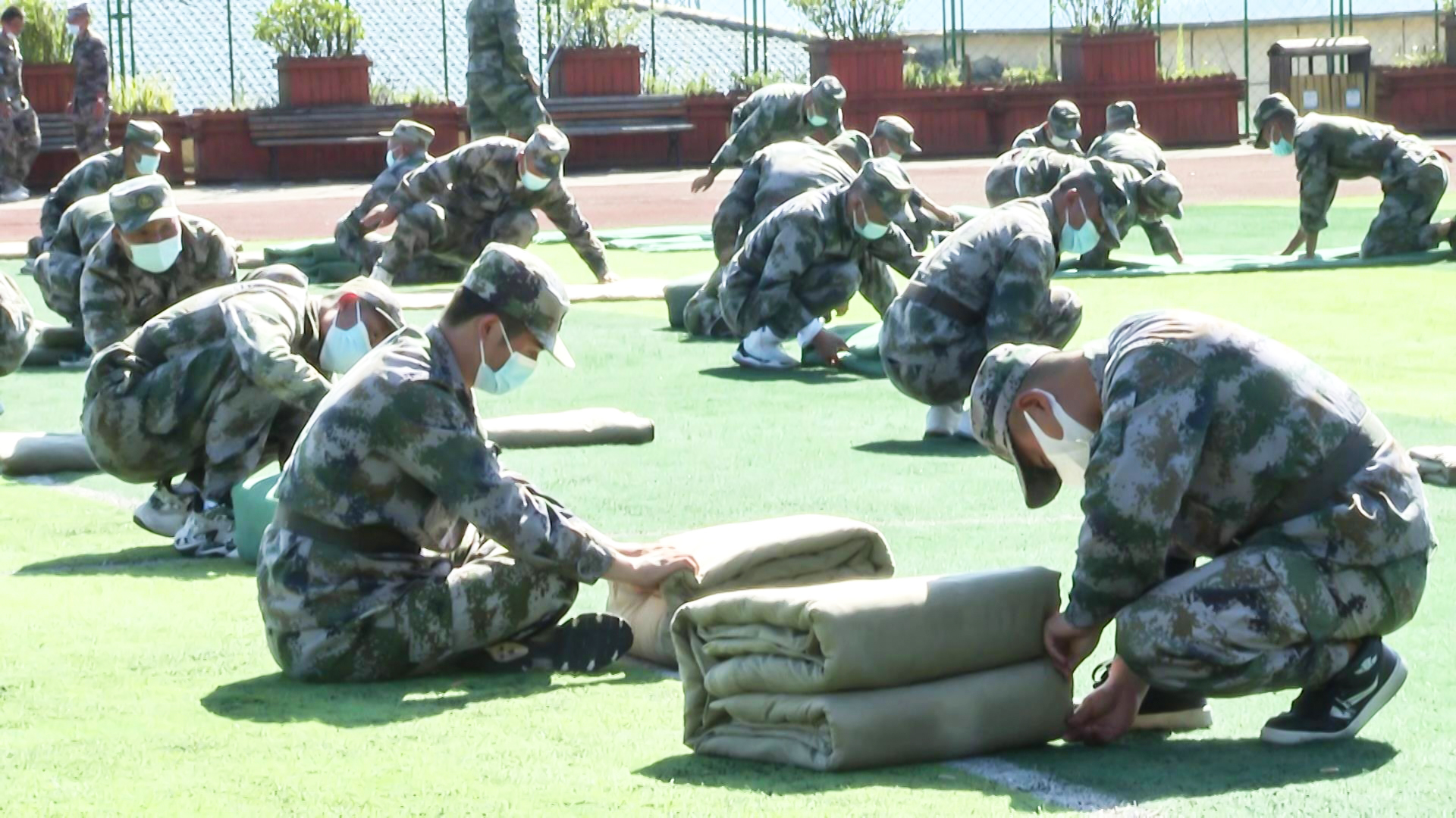 训练场上,记者看到,在教官的示范指导下,预定新兵们的被子叠得越发有模有样。