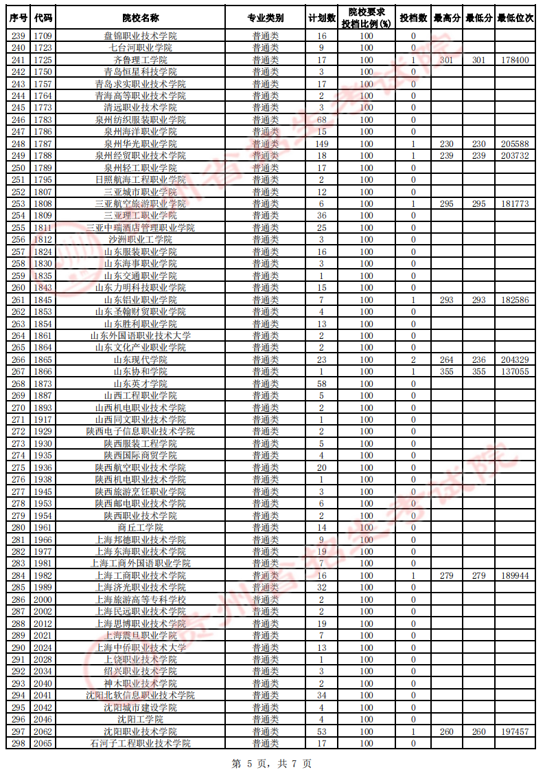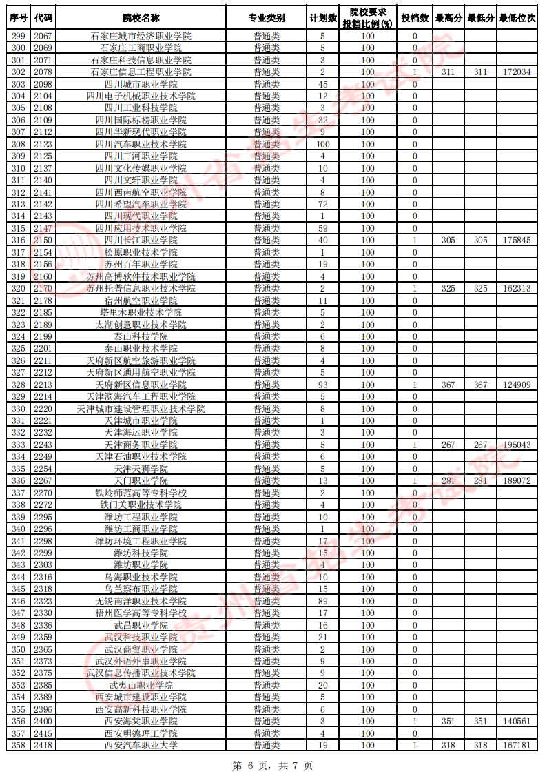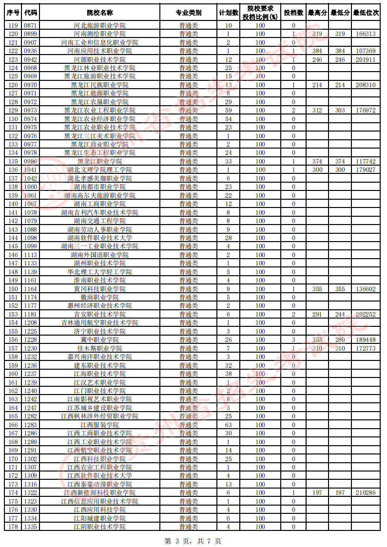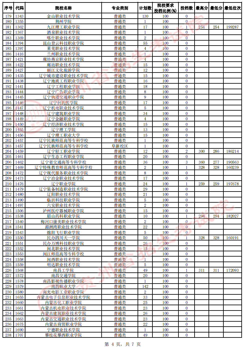 贵州省高考高职(专科)院校第4次征集志愿投档情况(文史类)