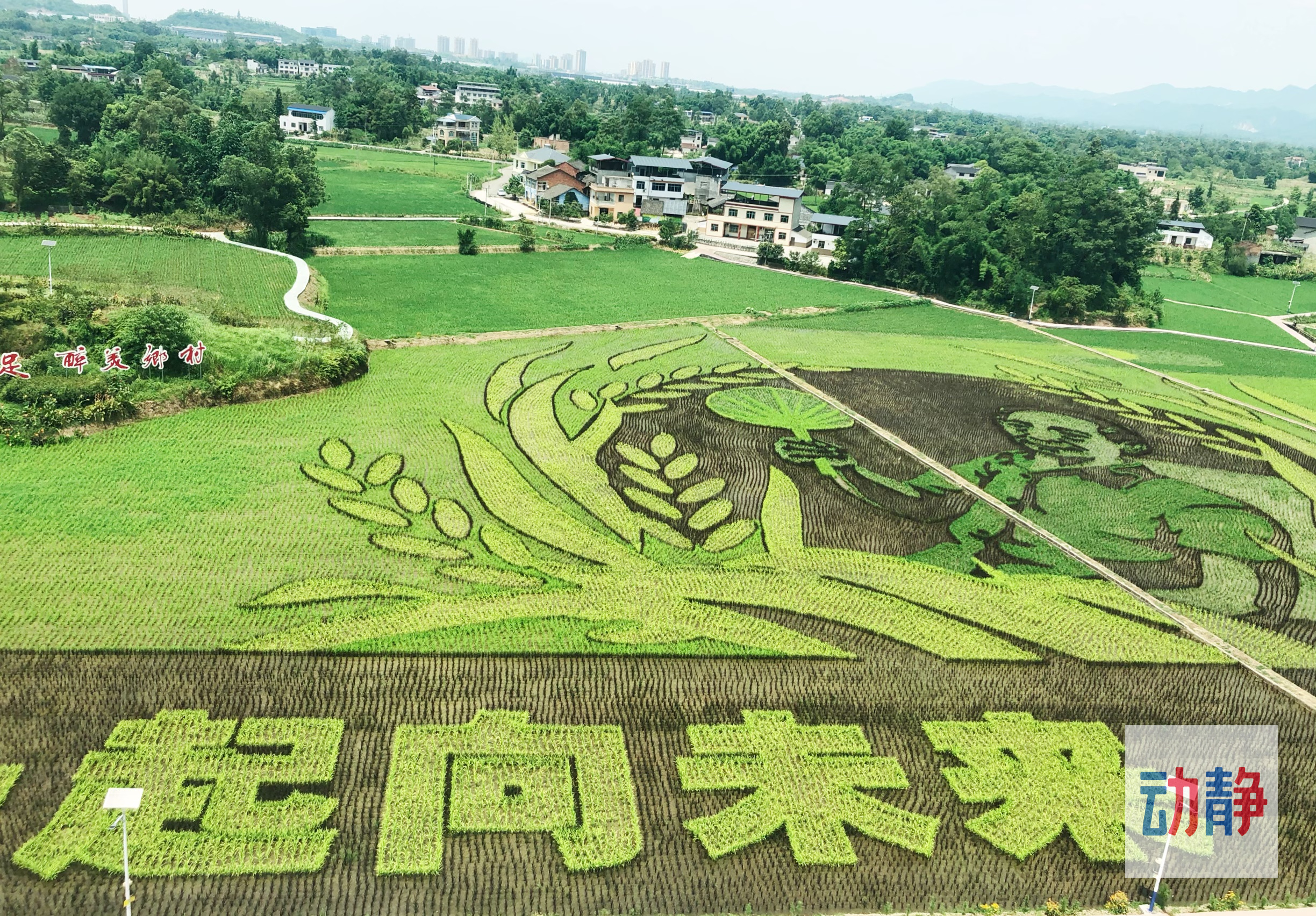 从2018年隆平五彩田园首次亮相以来,每年都会种植一幅袁隆平院士形象的稻田艺术图,致敬袁老。今年,五彩田园的主图就是“禾下乘凉”。不仅如此,每年还会选用大足石刻经典造像制景,助力大足旅游业的发展。拾万镇的五彩田园是用绿、黄、红、白、紫五种特种水稻在田间绘制图案,为了让图案持续时间更长,当地选用了经过改良的晚熟品种,最晚可持续到国庆之后。