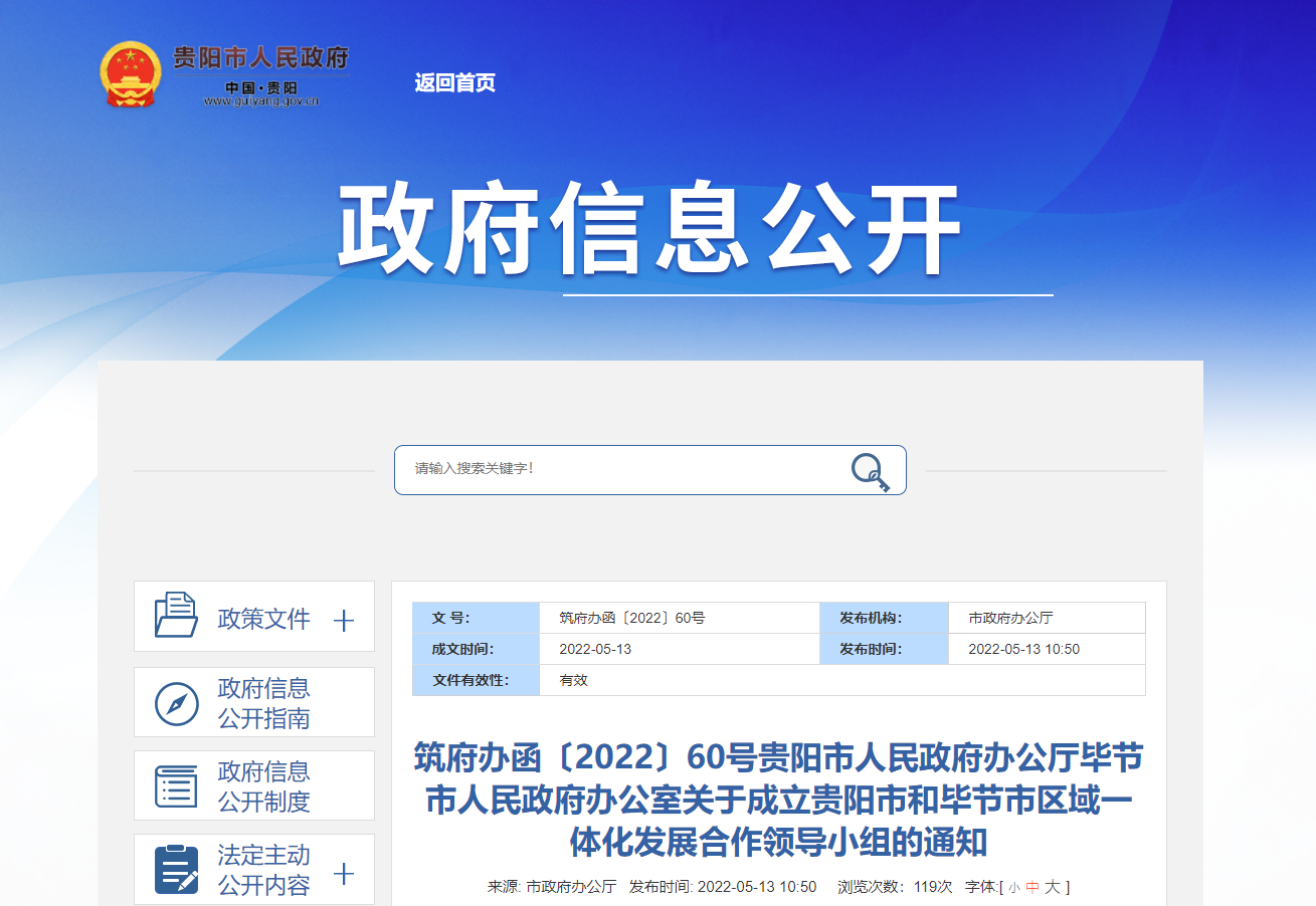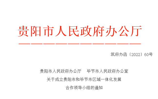 筑府办函〔2022〕60号贵阳市人民政府办公厅毕节市人民政府办公室关于成立贵阳市和毕节市区域一体化发展合作领导小组的通知