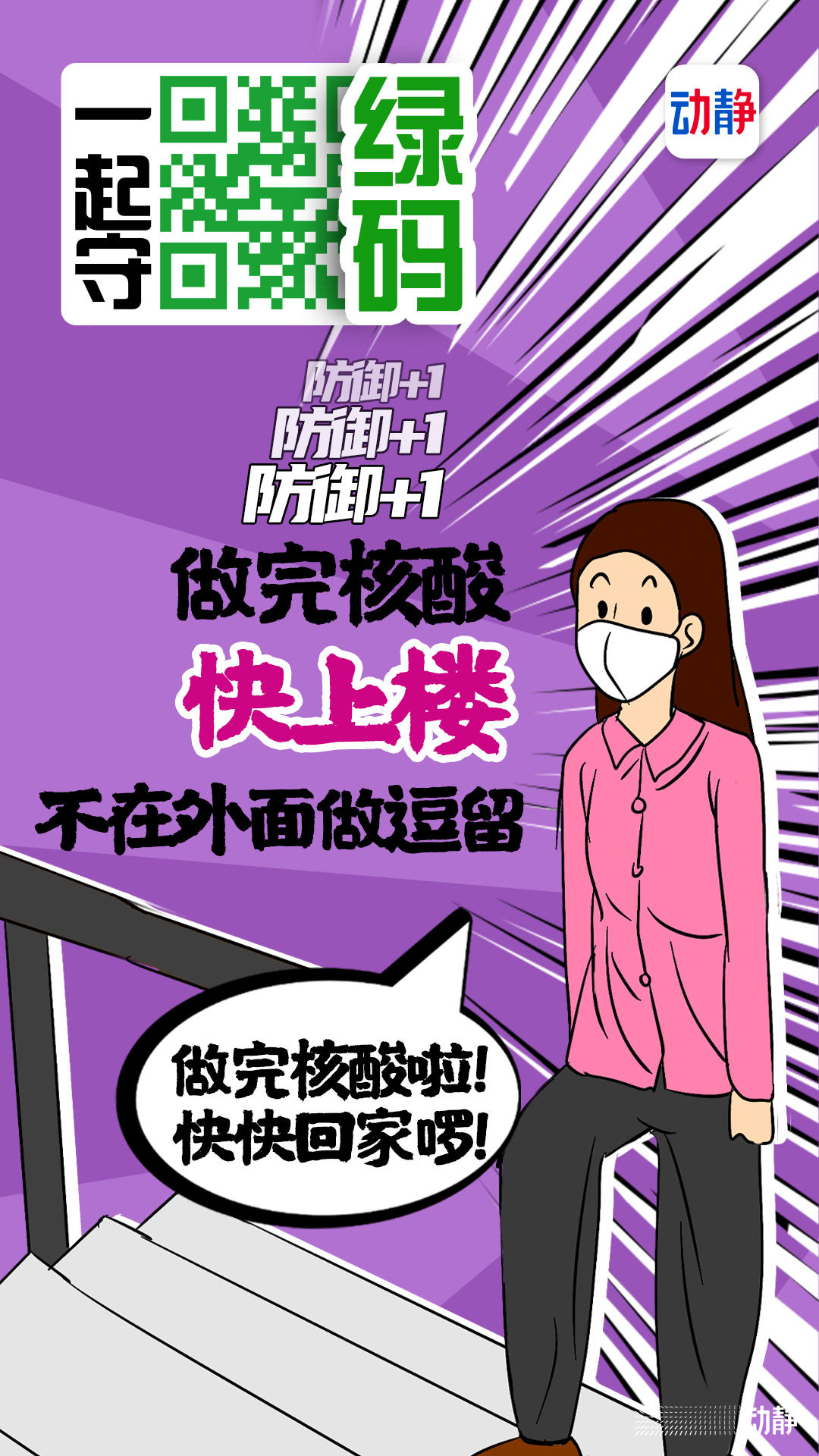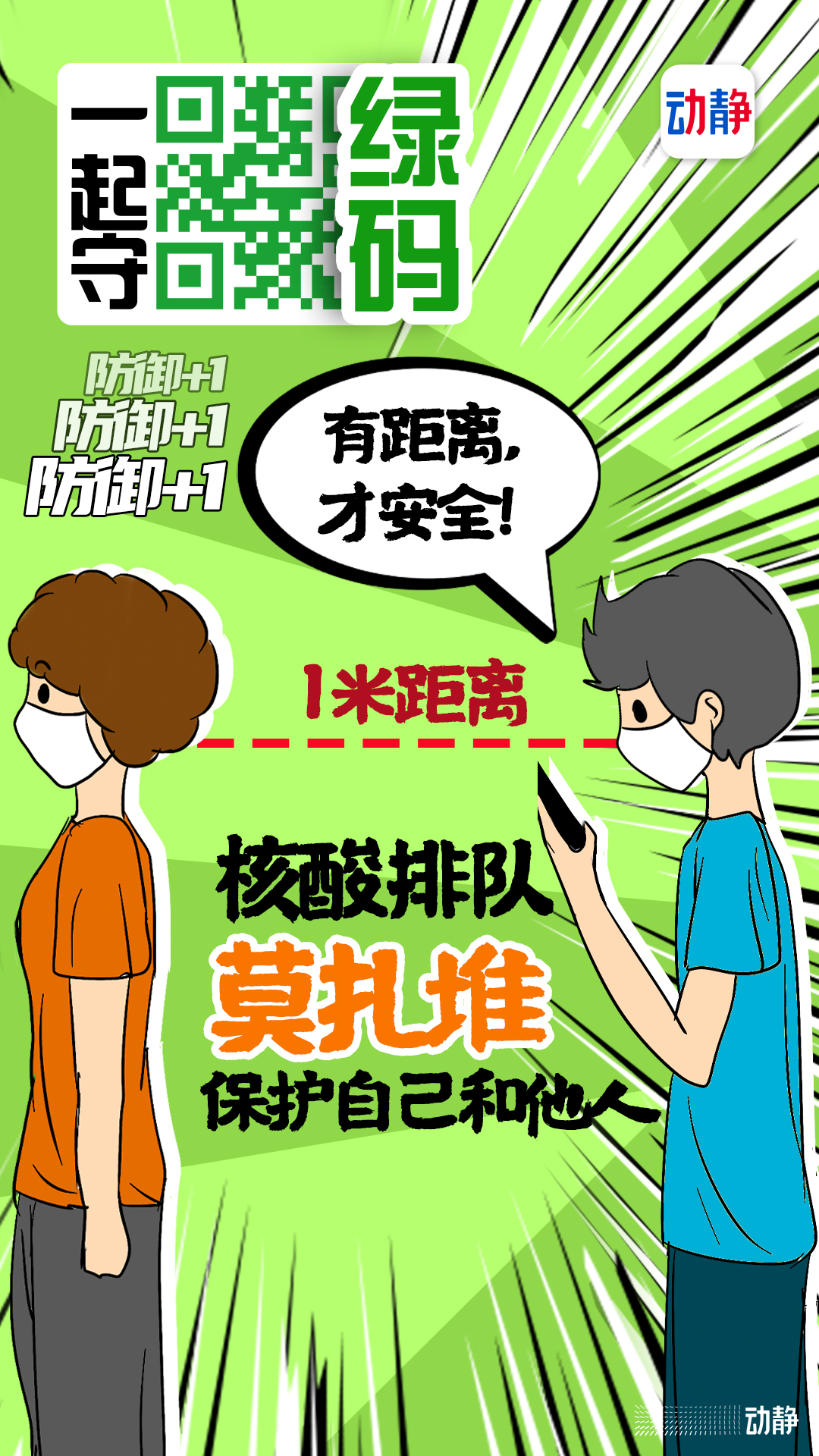 大家在排队做核酸检测的时候一定要记得戴口罩哦!