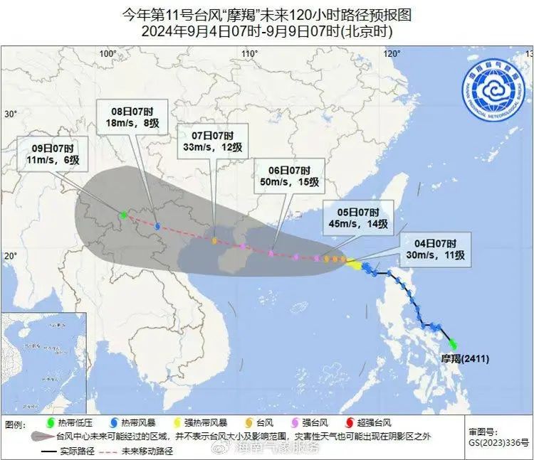 据交通运输部珠江航务管理局消息:根据气象预报,今年第11号台风“摩羯”将达到强台风或超强台风等级,最大风力达15到17级,对琼州海峡水域产生重大影响。