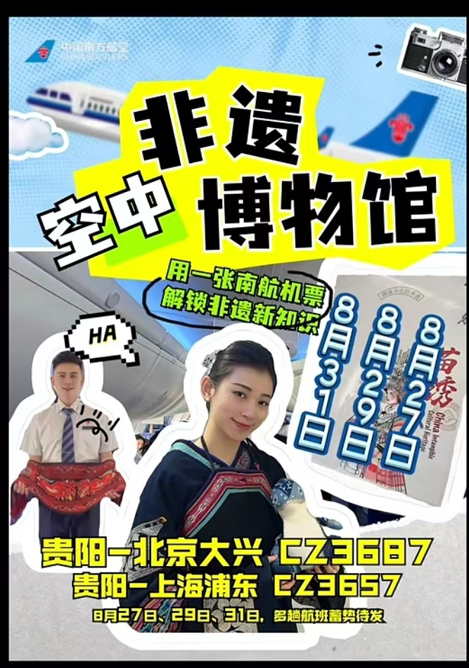 这就是南方航空贵州公司客舱部策划的“贵州非遗空中博物馆”主题航班。