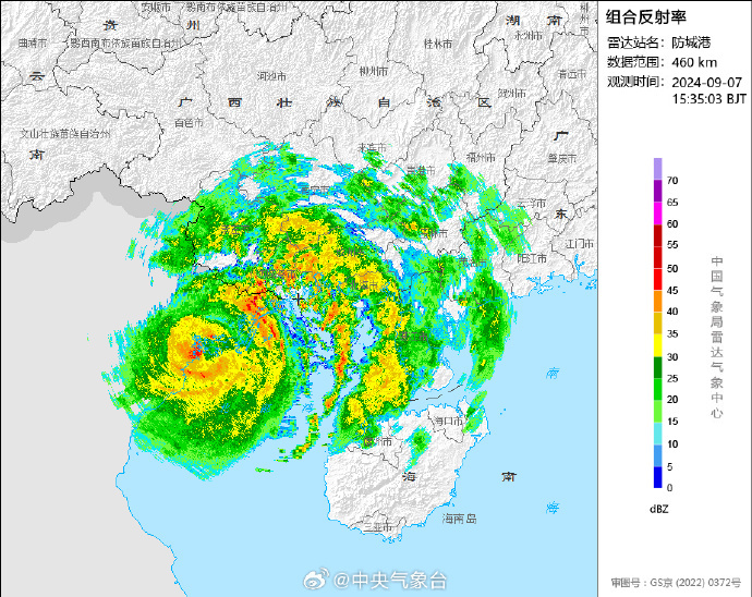 今年第11号台风“摩羯”(超强台风级)的中心已于今日15时30分前后在越南广宁省南部沿海登陆,登陆时中心附近最大风力有17级(58米/秒),中心最低气压925百帕。