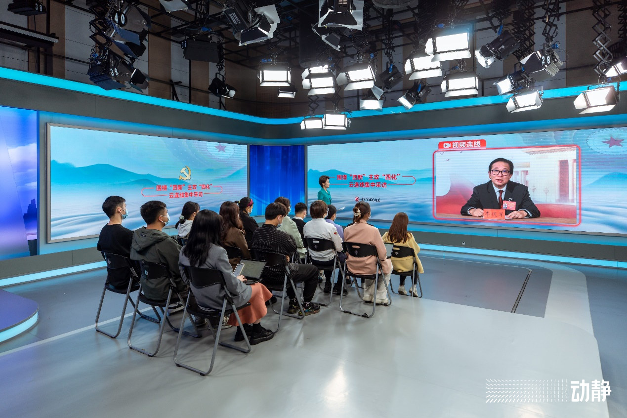 10月20日晚,由贵州省委宣传部主办的党的二十大贵州省代表团云连线集中采访活动第四场在贵州广播电视台举行。党的二十大代表、贵州大学党委书记李建军就“围绕'四新'主攻'四化'”主题,接受了记者的视频连线采访。