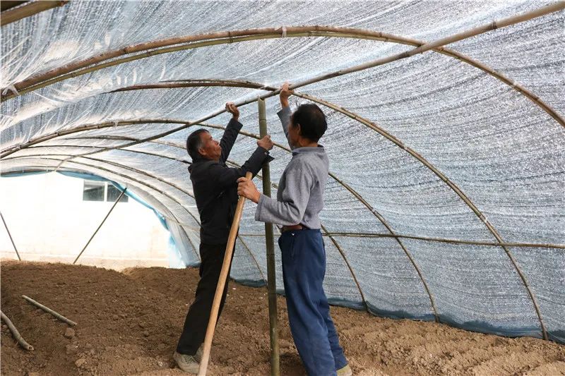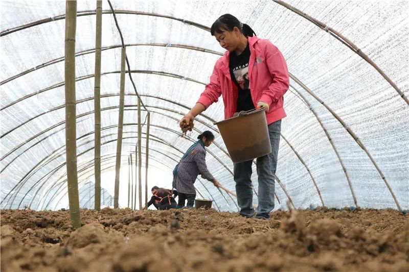 初冬时节,田坪镇庆寨村田间地头,群众分工合作,加固大棚、粉碎菌种、播种菌种、覆土……种下来年增收的希望。