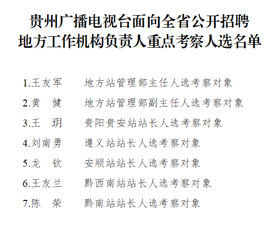 公示期自2022年5月6日起至5月11日止,公示期内如有异议,请向贵州广播电视台人力资源部、纪检室反映。