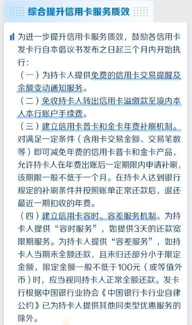 值得注意的是,10月30日,中国银行便公告称综合提升信用卡服务质效,将在11月底前提升容差服务限额至100元。
