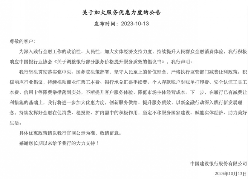 就在《倡议书》公开的第二天,包括工商银行、农业银行、中国银行、建设银行、邮储银行等在内的多家国有大行陆续发布有关公告,积极响应减费让利的行业倡议。