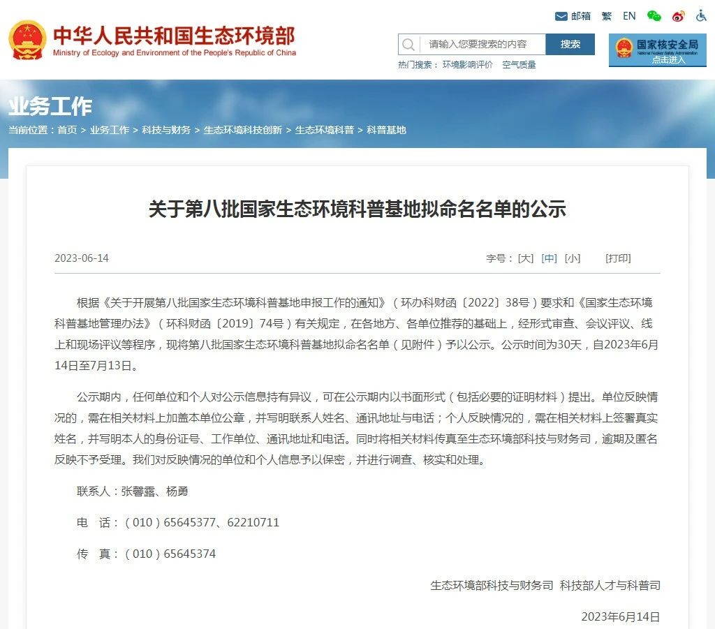 国家生态环境科普基地是展示生态环境保护科技成果与生态文明实践的重要场所,是向公众普及生态环境科技知识、宣传生态文明建设成就、提高全民生态与科学文化素质的重要阵地,在开展社会性、群众性、经常性的科普活动中具有示范性,是国家特色科普基地的重要组成部分。