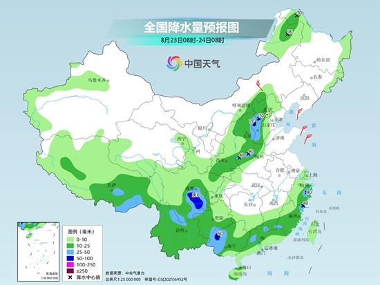 今明两天(8月23日至24日),西南地区一带的降雨将明显增强,四川盆地、云南等地局地有大到暴雨。此外,今日我国正式进入处暑节气,北方地区秋凉感渐显,西北、华北北部、东北多地最高气温会降到30℃以下,周末最高气温30℃线甚至会大幅南退至长江以南。