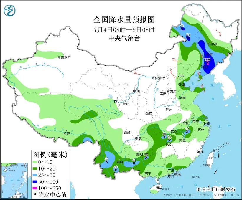中央气象台4日10时继续发布暴雨蓝色预警,预计4日14时至5日14时,内蒙古东北部、黑龙江西南部、吉林西部和南部、辽宁北部和东部、云南西部和东南部、广西西北部、贵州东南部等地部分地区有大到暴雨,其中,辽宁北部等地局地有大暴雨。