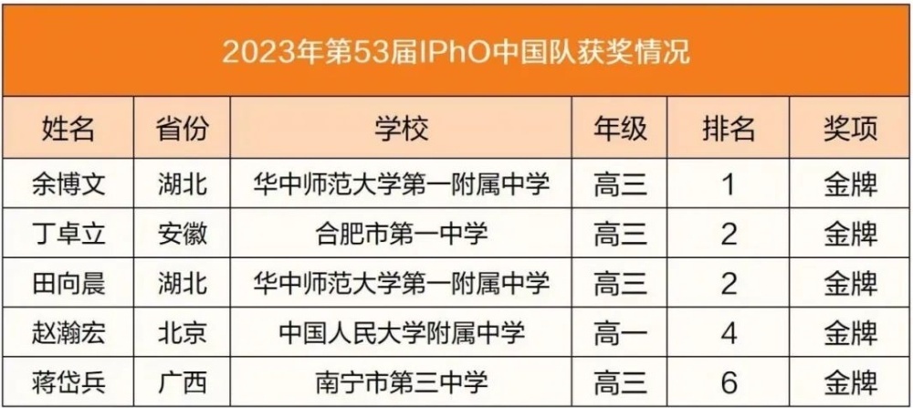 第53届国际物理奥林匹克竞赛17日在日本东京闭幕,参赛的中国队5名选手全部获得金牌。