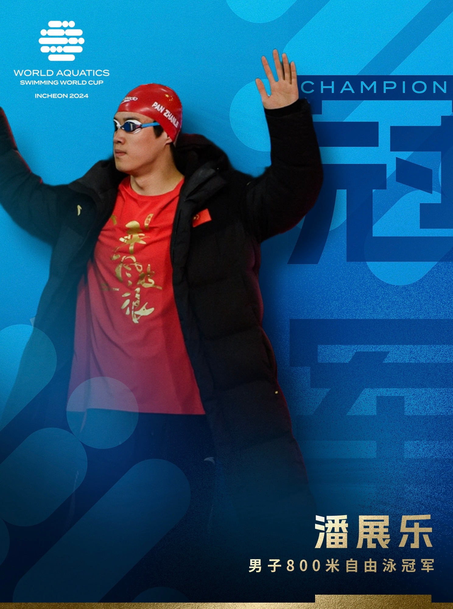 2024世界泳联游泳世界杯仁川站男子800米自由泳决赛,潘展乐以7分35秒30的成绩获得冠军,打破赛会纪录。