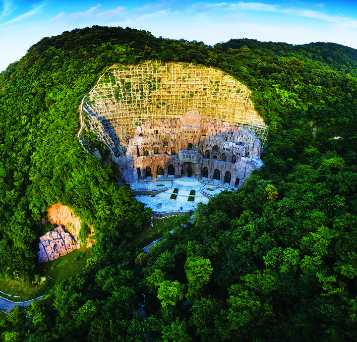 伴随着良好经济效益而来的,是难以忽视的环境问题。长期的开采,使幕府山主峰从205米下降到186米,形成了相当于30个足球场面积的采石宕口。“每次使用炸药后,碎石乱飞、粉尘飘扬,风从江上吹过,主城区都是灰尘”,范举贤回忆。如今,这一采石宕口已经被整合成为达摩古洞景区,幕府山也由“荒山”变“青山”,绿树环绕、景色旖旎,这样的转变,正是坚持走“生态优先、绿色发展”之路的生动实践,是“十年复绿、百年承荫”的最好见证。