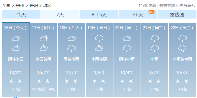 17日夜间到19日白天,阴天有阵雨或雷雨。