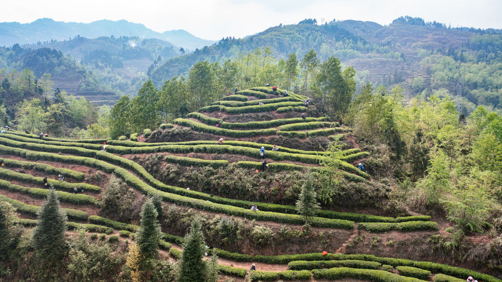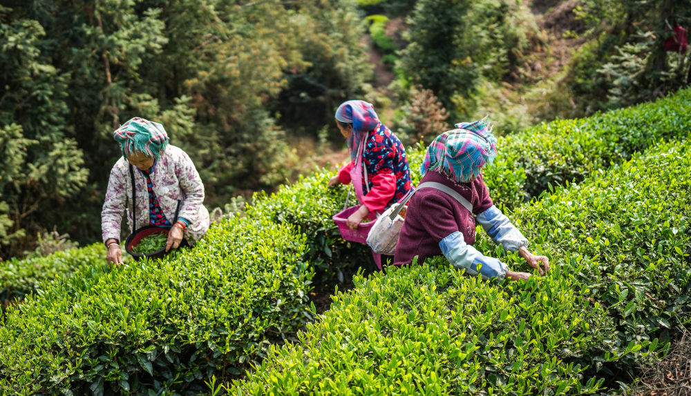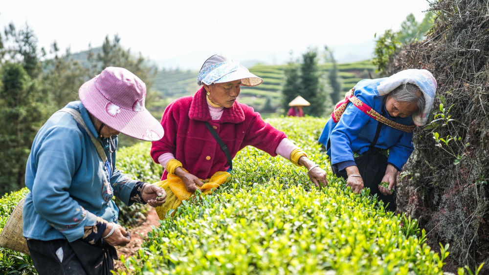 清明临近,贵州省六盘水市多地茶园进入明前茶采摘忙碌期,人们抓紧时间采摘、加工新茶,供应市场。截至2022年底,贵州省茶园面积达到700万亩,年茶叶产量达到45.4万吨、茶叶产值达到606.2亿元。