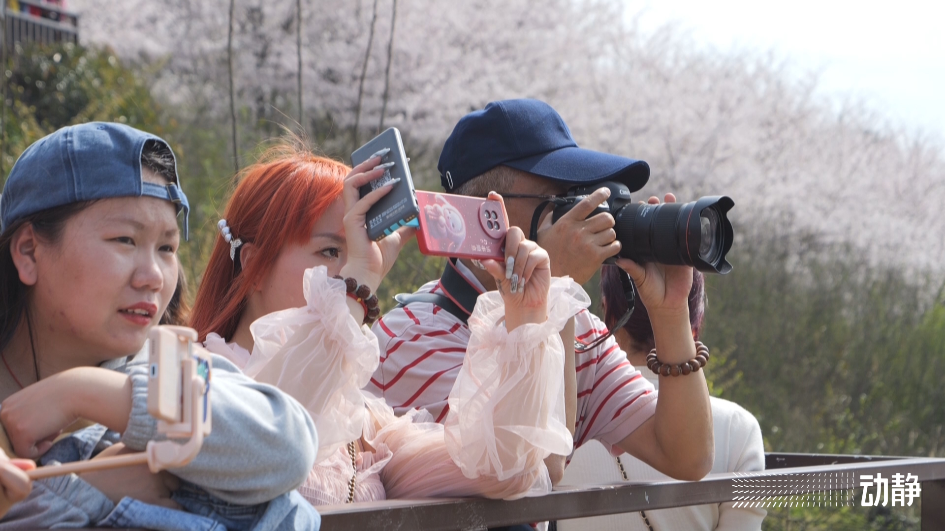 “今年我们把樱花园的很多景点进行了前期的摸排和深度的调研。以往的数据来看,樱花园的游客到达了以后,他的唯一目的地就是观景台,可是观景台的面积非常有限,所以我们今年在樱花园里面发掘了6个以上的区域,让游客能够去看樱花园不同角度的美。今年我们也给大家打造出了一个营地来,大家可以在营地下喝茶喝咖啡,亲子之间的这种互动。”贵安樱花园交通保障组指挥长李萧沐介绍。