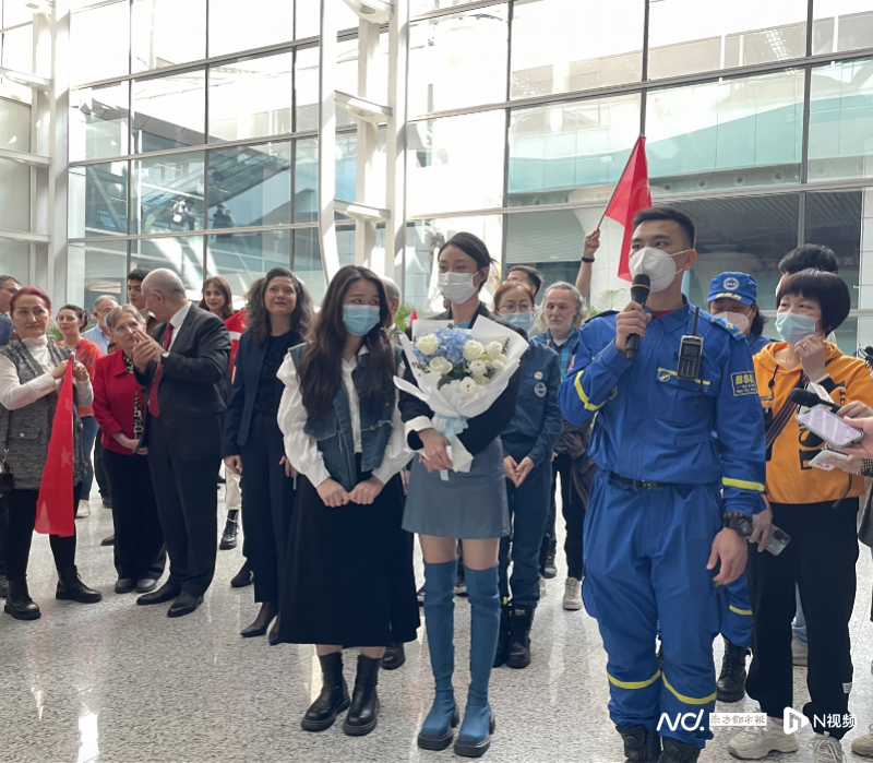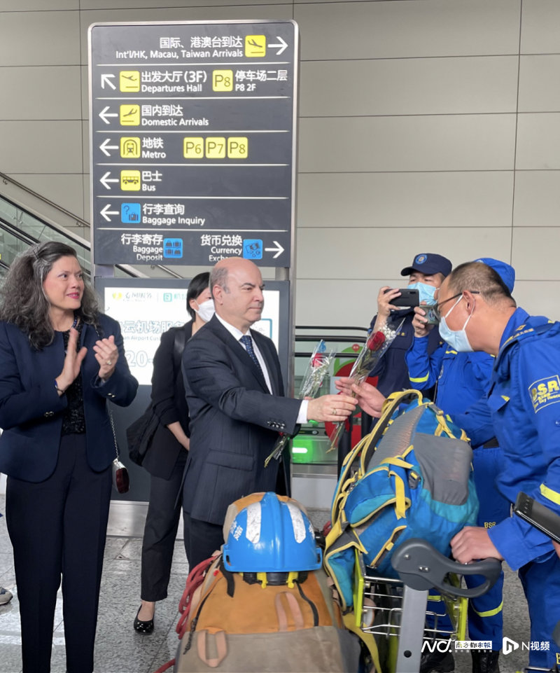 南都记者注意到,土耳其共和国驻广州总领事馆人员手持鲜花在现场一起迎接中方救援队员。库特鲁·阿义坎在现场表示,中方救援队是最早到达土耳其开展救援行动的救援队之一,“我们非常感谢中方救援队和中国政府给予的支持。”此外,现场还有华南地区的土耳其侨民手持两国国旗迎接,彰显两国情谊。