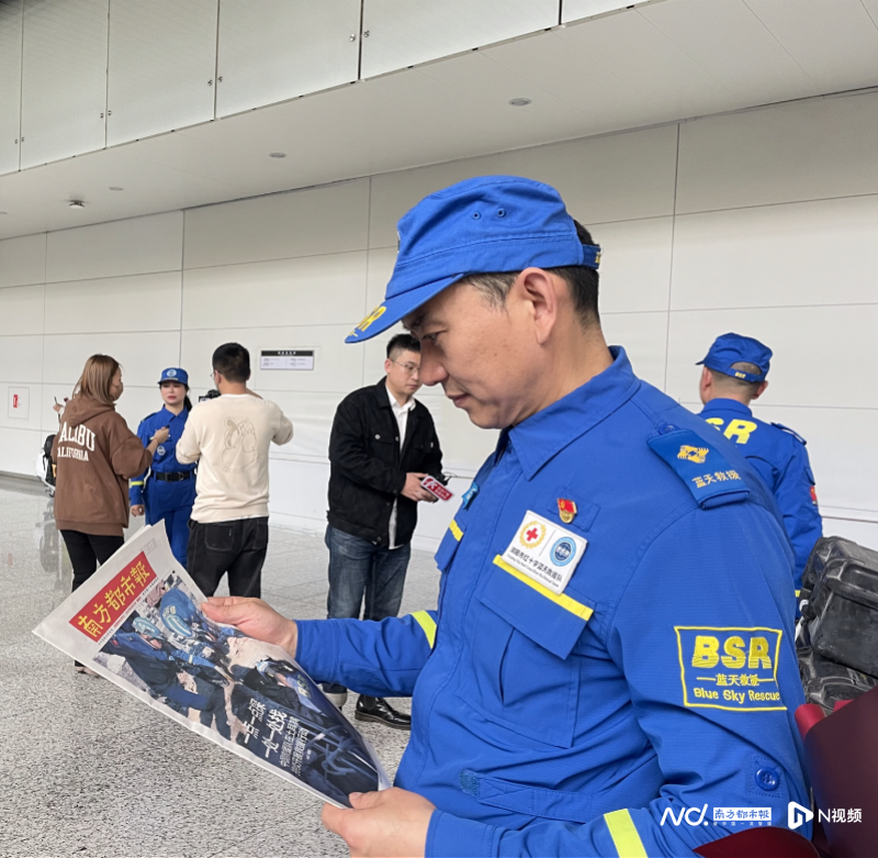 而在赠送给回国队员的礼物中,除了能量袋和纪念章等礼品,还有南方都市报的报纸。