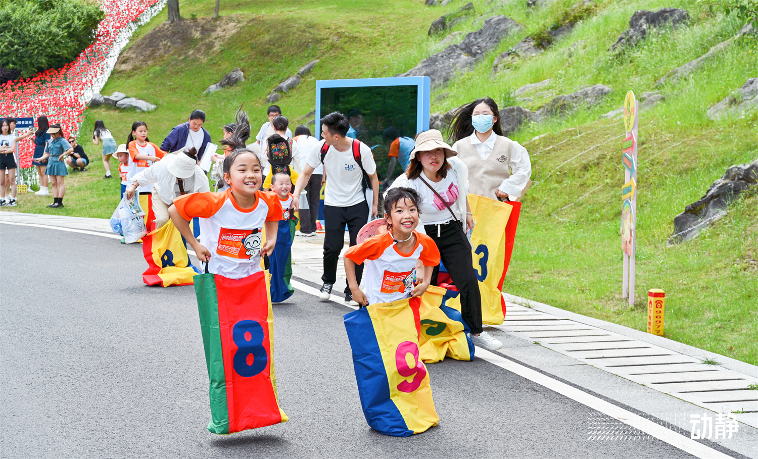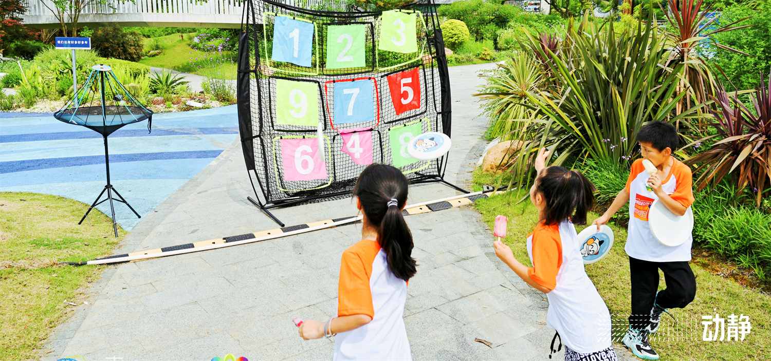 现场有500对亲子家庭参加活动,百姓健身房、黔南水书、二人三足、逆风飞翔、九宫飞盘、桨板速度战、袋鼠跳……参赛的家长和孩子以家庭为单位在每个项目点共同完成任务后获得印章,解锁项目越多,获得的印章越多,最终以印章的数量兑换奖品。