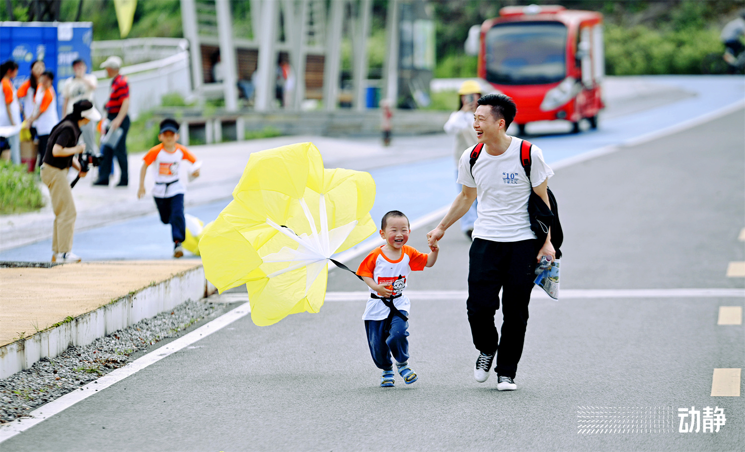 在赛场上,每个参赛家庭都充满活力与激情,孩子和爸爸妈妈一起奋勇争先、努力拼搏,大家都展示出更快、更高、更强的体育精神。