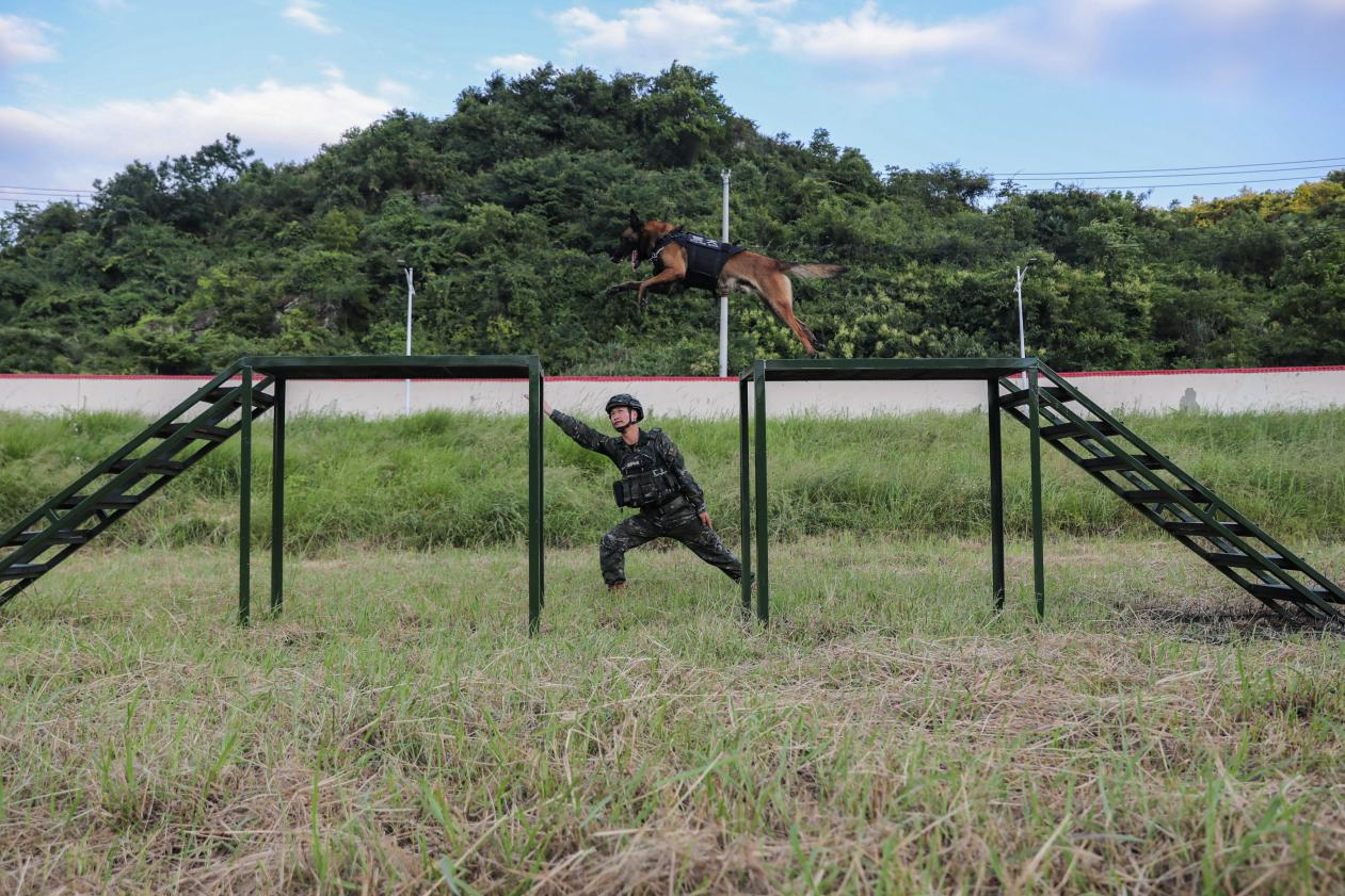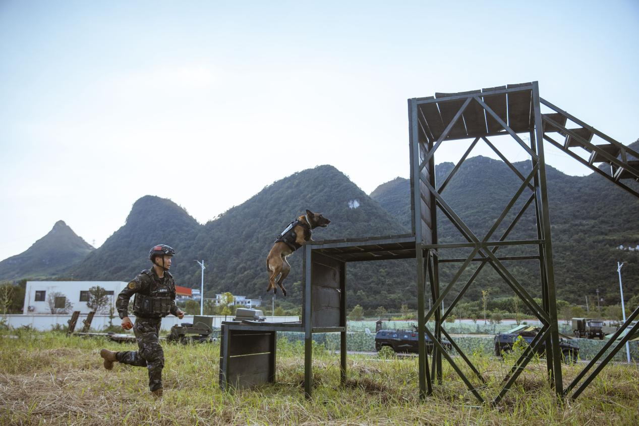 近日,武警贵州总队机动支队组织警犬开展战术越障、解救人质、追踪目标、协同追击等课目训练,进一步提高警犬的服从能力和技战素养,强化协同能力,为遂行多样化任务打好基础。