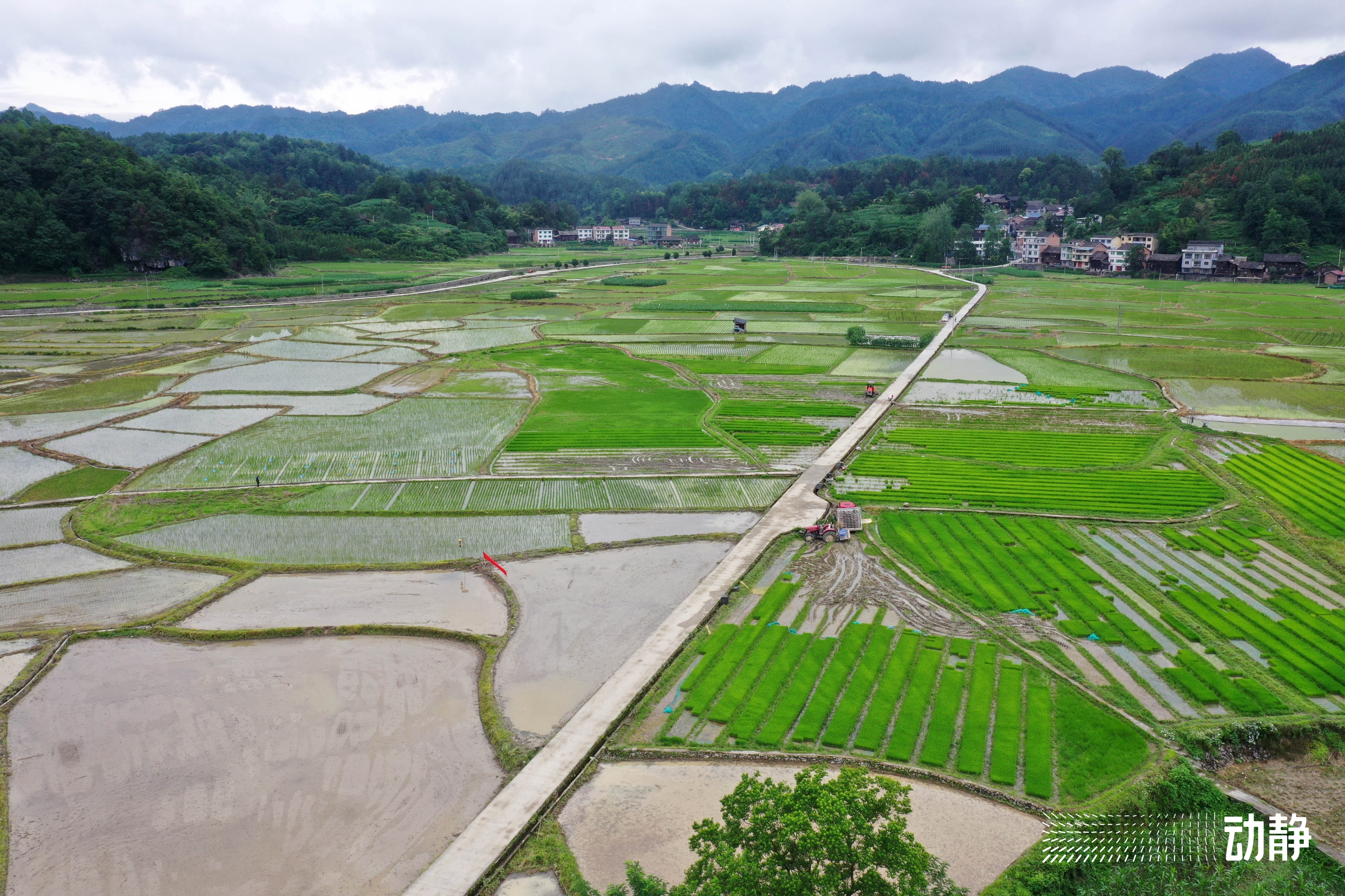 三夏时节,剑河县10.9万亩水稻进入农忙期,农民抢抓近期雨量充沛的有利时机,进行夏种夏管,为今年的粮食丰收打好基础。在南明大坝450亩高标准水稻示范田里,农机手正驾驶着插秧机在田间耕作,空中,植保无人机驰骋在田野上进行飞防作业,一派机械化耕种的繁忙景象。