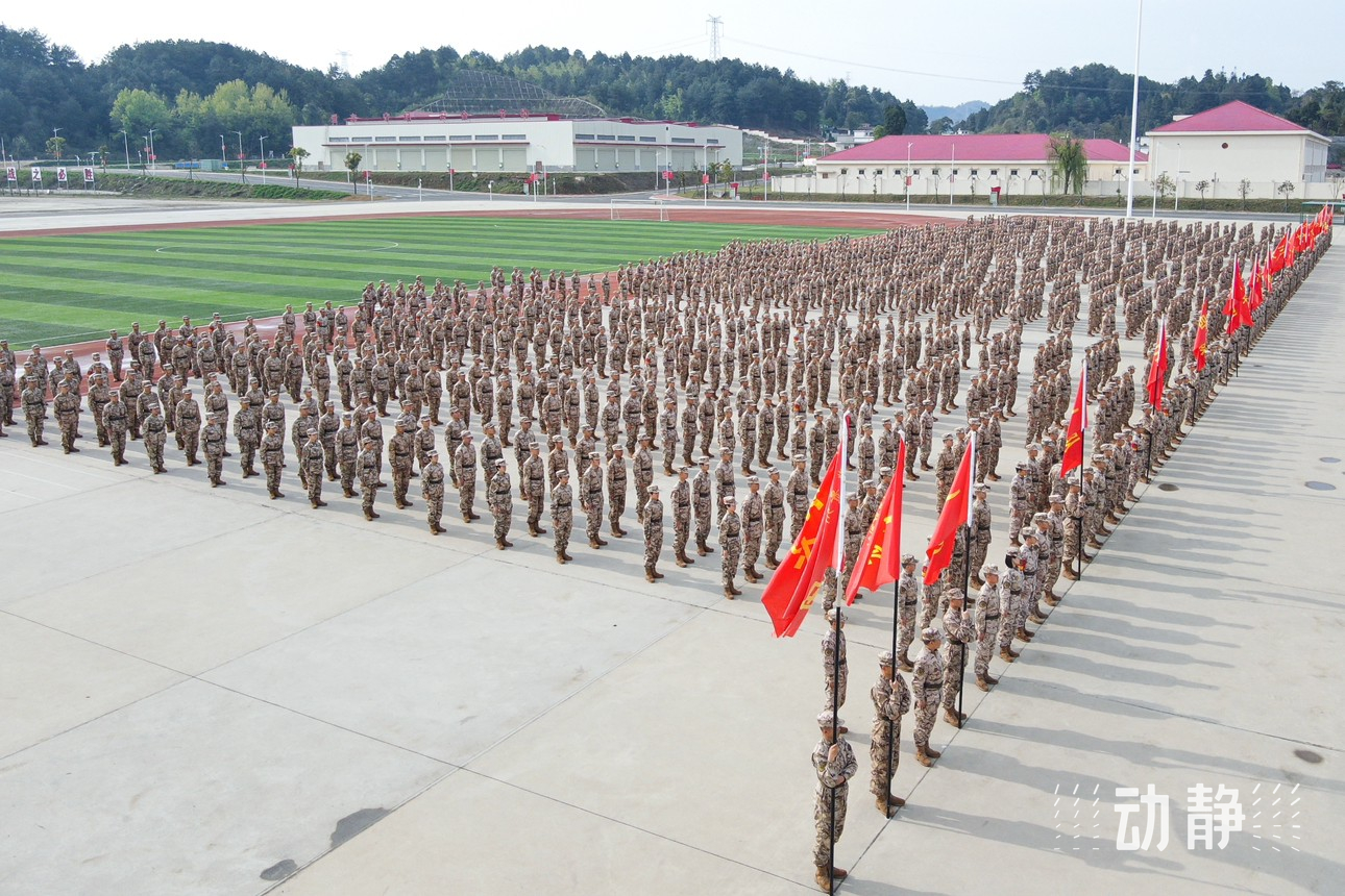 在庄严的国歌声中,大会正式拉开序幕,千余名新兵整齐列队、精神饱满、斗志昂扬,共同迎接属于自己的“开学典礼”。仪式现场,该总队领导要求全体新兵要牢固树立爱军习武、报效国家的志向,自觉砥砺英勇顽强、锐意进取的品质,强化培养令行禁止、雷厉风行的作风,全面锤炼能打仗、打胜仗的本领,叫响“当兵不习武不算尽义务,武艺练不精不算合格兵”的口号,刻苦钻研、勤学苦练,严格要求、严格训练,增强战斗体能,强化战斗技能,扣好军旅“第一粒扣子”,迈好军旅第一步,书写军旅生涯的光辉篇章。“开训就是开战,动员就是誓言,我们一定以昂扬的战斗姿态,勇站排头的战斗决心,争创一流的成绩,争当一流尖兵,早日成为‘四有’新时代革命军人。”新兵杜华生用铿锵语言点燃了战友们的熊熊斗志。