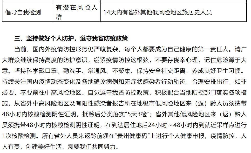 刚发布!贵州省对重点地区来(返)黔人员健康管理措施
