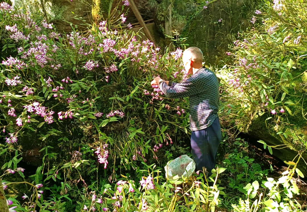 “我家种植石斛有200多亩,有部分种在竹林下长得不是很好,金钗石斛喜荫喜湿,它在冬季落叶的阔叶林下长得很好,准备下步换遮荫树种,石壳壳,反正竹子长得也不好,培育林下经济中药材产值高,我每年可以卖金钗石斛花和鲜条近200万元,现在我建立了电商平台,线上线下均在销售。”旺隆镇红花村袁图会介绍。