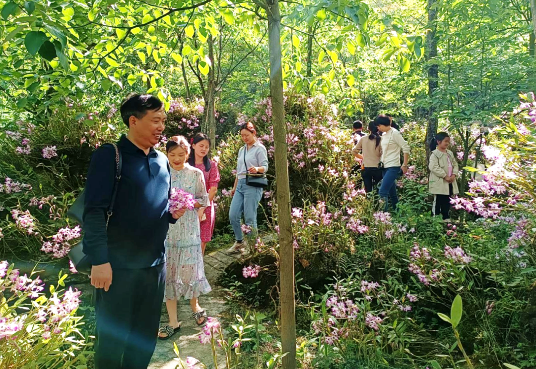 走进赤水市旺隆镇红花村金钗石斛示范基地,放眼望去,绿荫下的石头上开满了紫色的金钗石斛花,数十名村民正在石头上采收石斛花,还有不少游客在花丛中拍照、赏花,形成一幅美丽画卷。