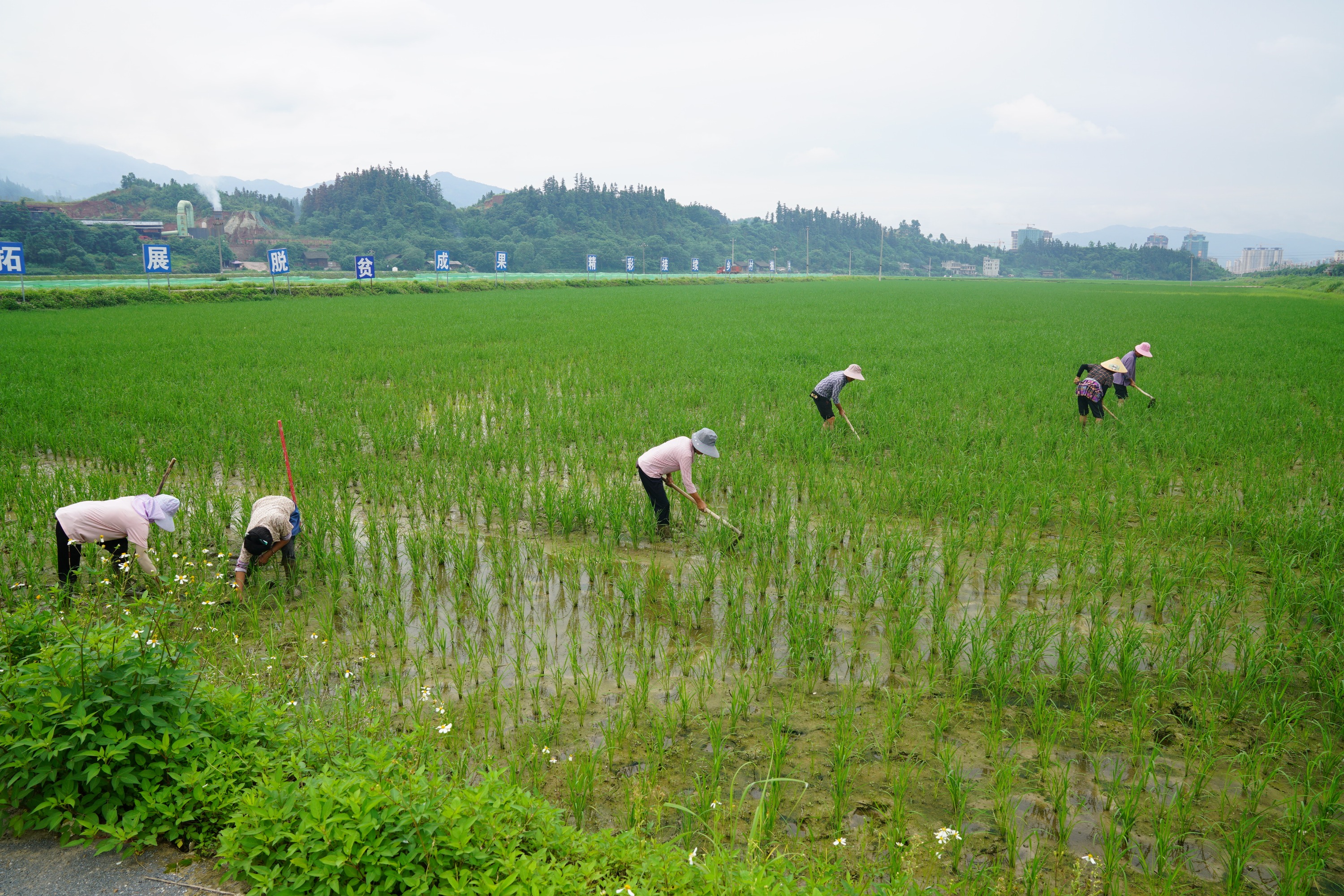 潘远豪介绍说:“现在车江坝区农田正值秧苗生长的黄金期,为使秧苗健康成长,我们每天都会请周边的群众到田间来除草、施肥等日常管护,这样既能解决群众务工难题,还能增加群众的务工收入,同时使秧苗能够健康成长,保证粮食安全生产”。