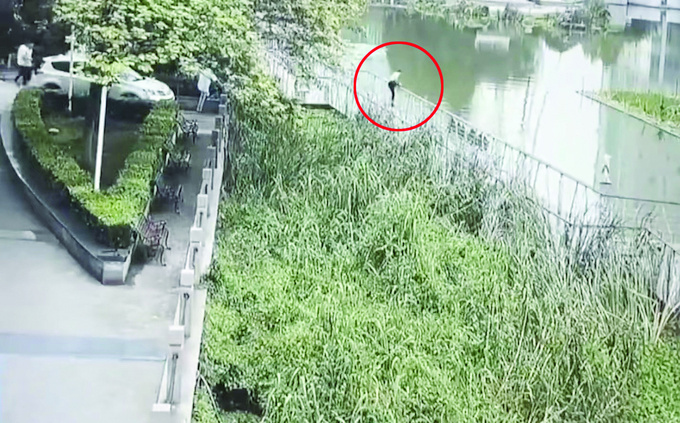 这时,栈道上有一个人走过,保安指着秦某对路人说“那个是小偷,抓住他!”秦某一听跳进了栈道另一侧的水中,这一边水面比较开阔,他在水里挣扎了几下,沉入水中。
