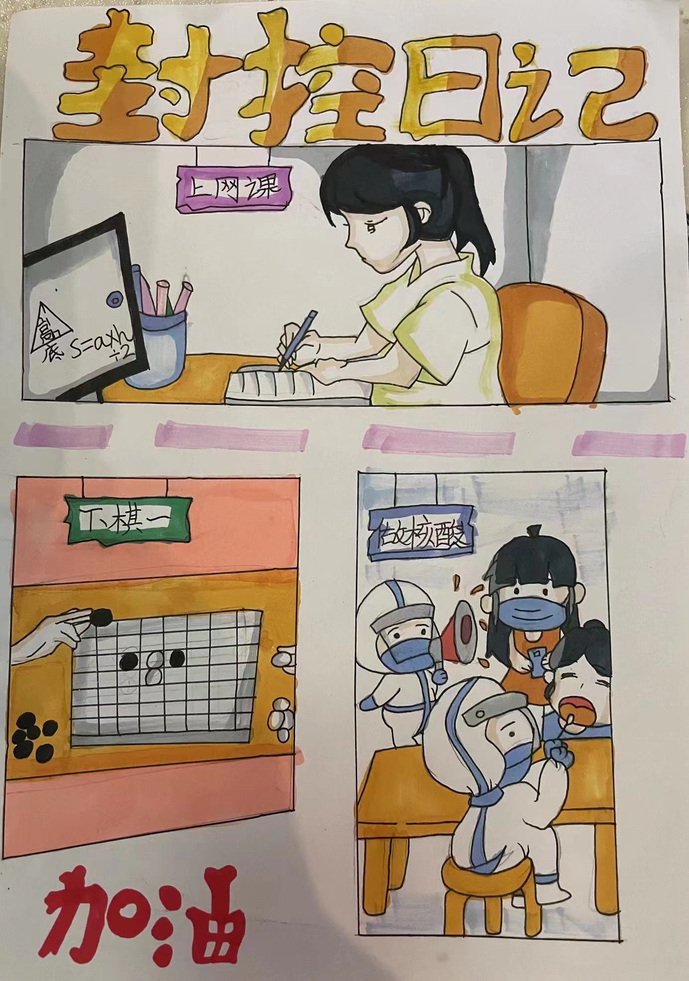 10岁的廖一诺是山水小学五年级的学生,每天看到爸爸早出晚归,疲惫不堪,没有了平时的撒娇和任性,还默默画下了自己在封控期间每天的学习生活,爸爸每天晚上回家,她都会用这样的方式告诉爸爸自己一天都做了什么。