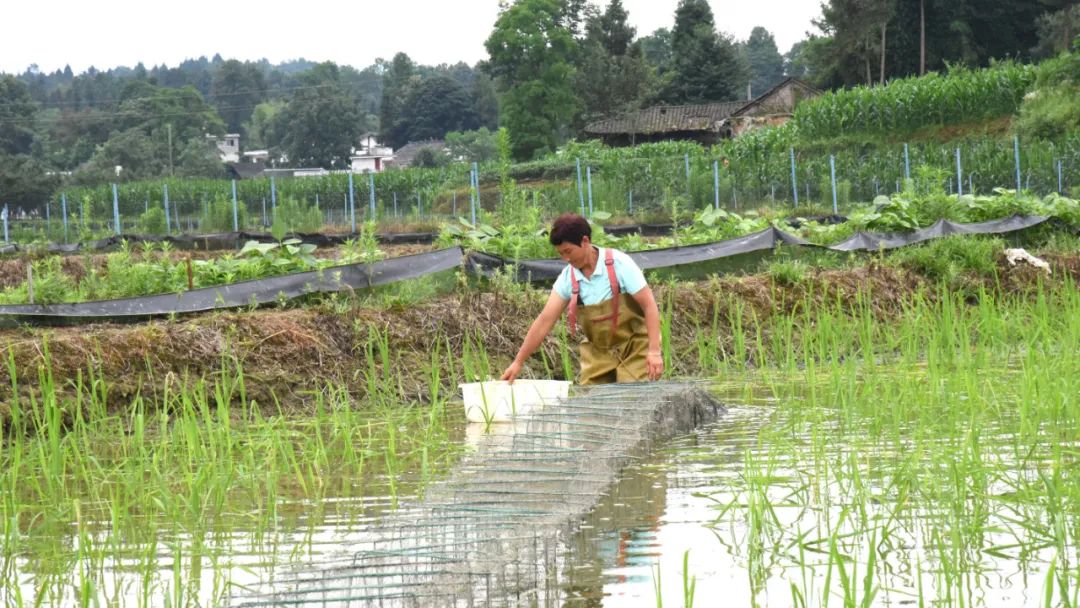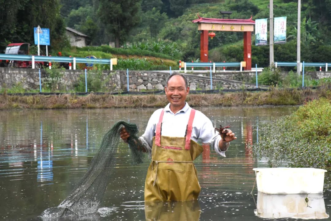 罗方喜说:“聚合村以前产业以传统农业为主,再好的稻田每年也只能种一季稻谷,没有其他附属产业。为了增加收入,有效利用资源,政府组织村民外出考察稻+N的模式。在考察中受到了启发,我于2020年投入80多万元,流转了200多亩土地,建成了小龙虾基地。”