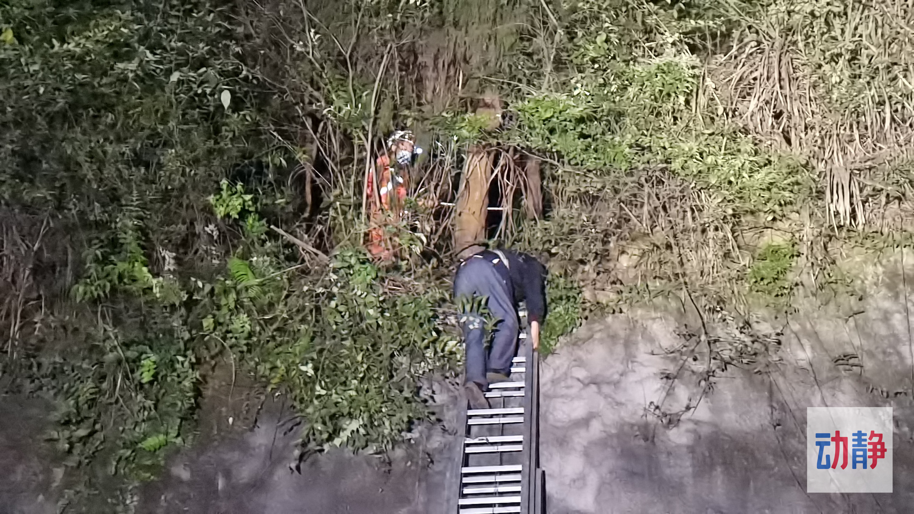 了解情况后,消防救援人员立即利用金属拉梯作为营救通道,由一名消防员携带救生安全绳、安全腰带、防坠落部件等救援装备,通过金属拉梯向老人靠近。沿途利用刀具清除拉梯两侧植被,以免在转移时刮伤老人。随后,消防员利用救生安全绳搭建保护点,并用救生安全绳及安全腰带将被困老人做好安全防护,经过10多分钟的紧张救援,成功将老人送至安全地带并转交给老人家属。
