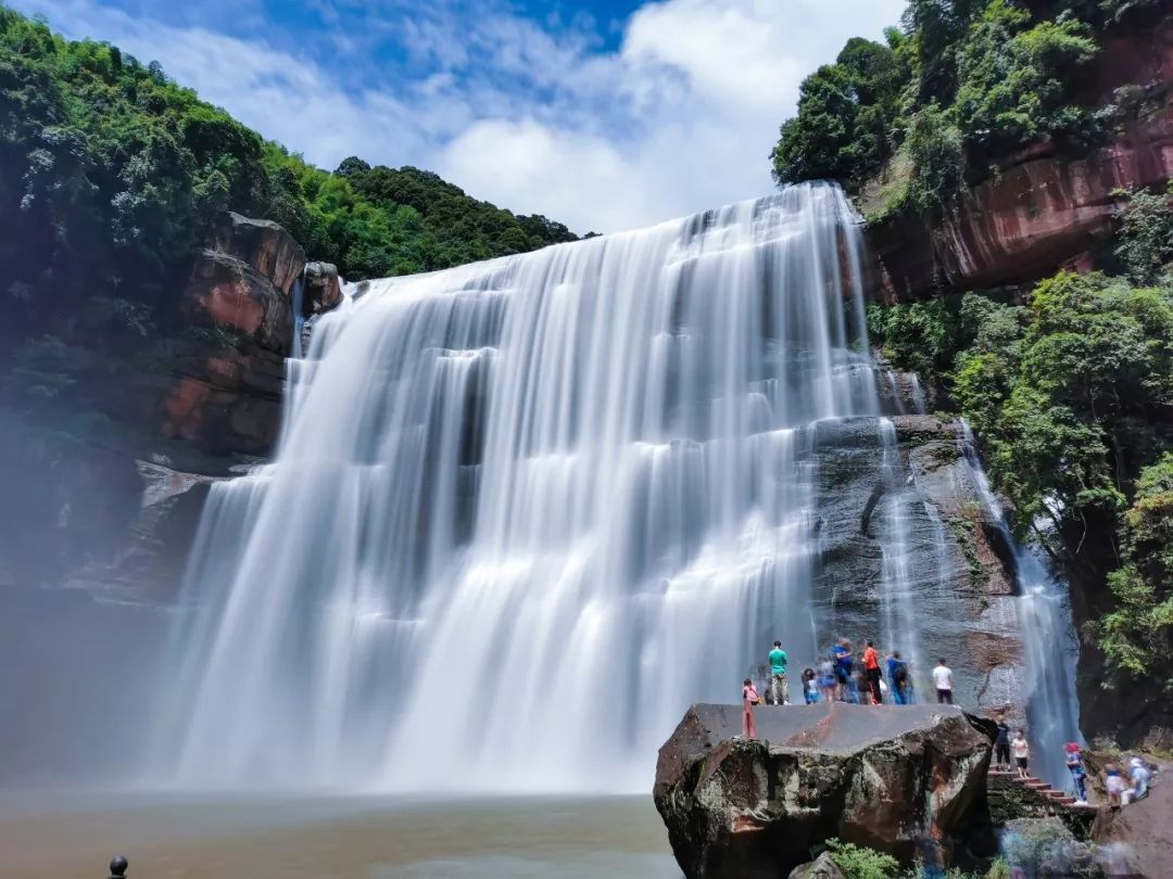 赤水大瀑布,高76米,宽80米,也叫做十丈洞瀑布。景区内道路曲折回环,浓荫蔽日,还有观瀑台、浪琴湾、飞虹桥、仙舞台、暗瀑石等景点构成一个天然的瀑布公园。夏季山水旅游,赤水大瀑布值得打卡~