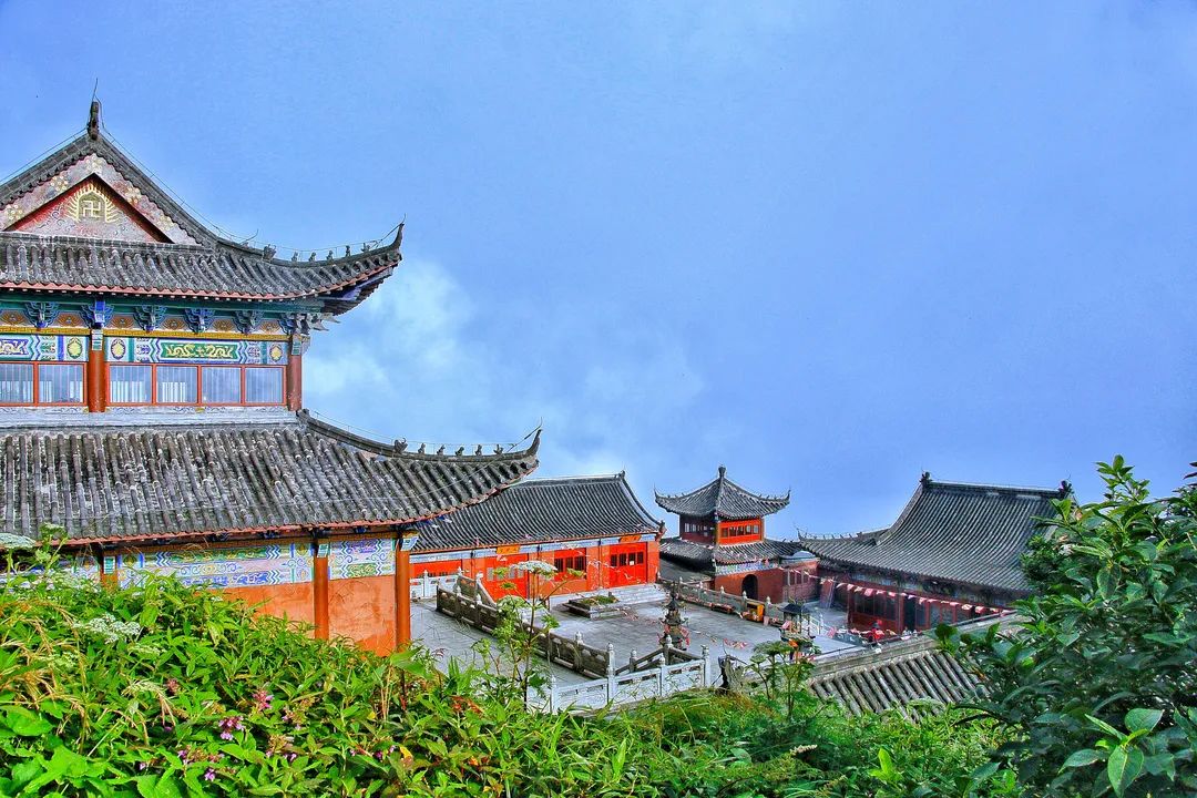 在金顶左侧,是始建于明初的古刹承恩寺。红墙灰瓦的寺院建筑伫立在红云金顶下,在清晨或傍晚,若有云海或佛光出现,更显得庄严肃穆。
