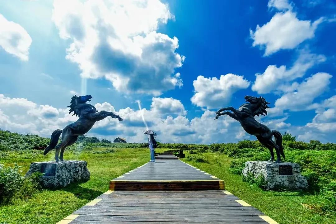 跳花坡景区地势平阔,紫外线强度低,空气负氧离子含量每立方厘米超过2万多个,年均气温11.48℃,气候温暖湿润,空气清新,最宜避暑疗养。另外,这里还有很多拓展项目,骑马、露营、滑索、真人CS射击体验等等,是一个户外休闲、养生避暑、野外训练、探秘寻宝的好地方。