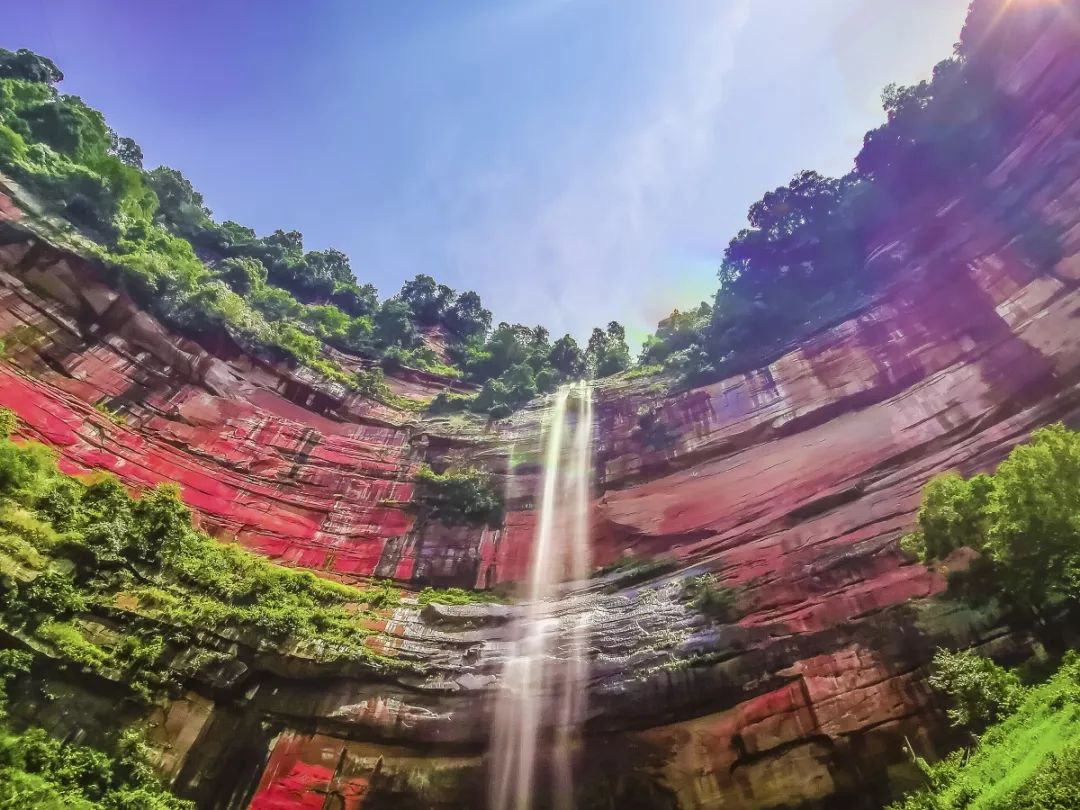 赤水丹霞旅游区·佛光岩,是赤水国家级风景名胜区的重要组成部分,也是世界自然遗产“赤水丹霞”的核心景区之一。一面高385米,弧长1117米的环形丹霞绝壁,被称为“世界丹霞之冠”。午后阳光照射下的岩壁丹霞似火,火红的岩壁与雪白的瀑水相互融合,还有水雾弥漫,幻神换色,重重无尽,犹如佛光普照...