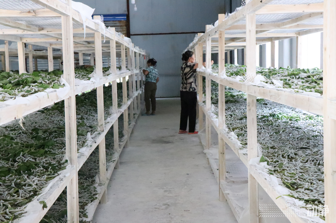 发展乡村产业,重在富民。基地在不断提高效益的同时,还通过摘桑叶、养蚕等方式,吸纳周边农户来此务工,帮助村民实现就近就业,增加家庭收入。“在家里种庄稼一年的纯收入只有三四千块钱,来这里养蚕,基本上每年要养半年的时间,按一天120块来算,一个月能拿3600块的工资,还有摘桑叶,如果手脚麻利,一天可以有近200块的收入。”在基地养蚕的梨子村村民李昌英笑着说。