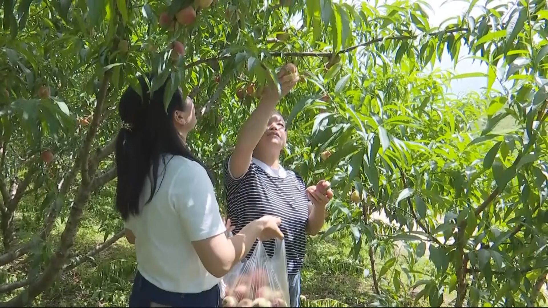 在安龙县友聚种养殖农民专业合作社桃子种植基地,红彤彤的桃子挂满枝头,阵阵桃香四处弥漫。新街居委会的村干部们正与邀约而来的亲朋好友一道,拿着盛装工具在桃林中来回穿梭,采摘购买成熟的桃子。