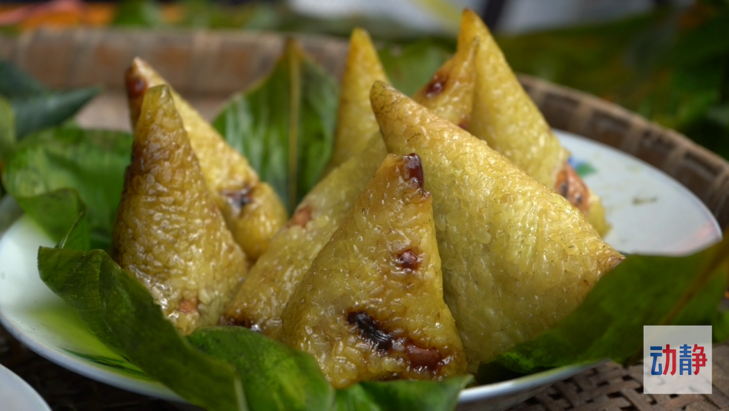 “我嫁到平江滚仲村已经有10年了,我跟着我婆婆学会做灰棕也有5-6年了,每年我们(到)端午节前后,都要自己做来吃,我们世世代代都吃这个,代代相传。灰棕有几个特点一是有草灰的清香咸碱味道与淡淡的植物味道,二是具有保鲜的作用,耐存放。我们还会包一种母子粽,给小孩带上,祈求平安健康。”滚仲村村民龚良菜向记者说道。