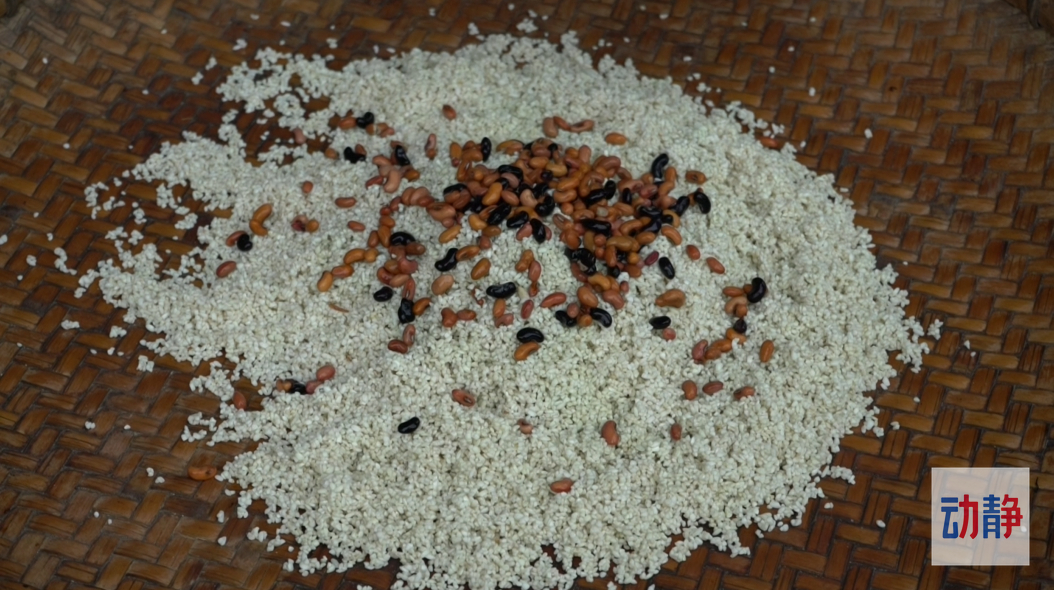 雨过天晴的清晨,村里的妇女们正行走在山里崎岖的道路上,路边杂乱的野草沾满了雨水,打湿了一群人是裤脚,越是好的粽子叶越在大山深处,在哪里的粽子叶长势正好、新鲜翠绿,到达地方后,大家眼疾手快,很快两个竹篮就装满了,带回家后便要开始清洗,山里清澈的泉水给粽子叶清洗带来方便,把粽子叶扔进水池浸泡一会,便开始把粽叶头往叶尖尾方向顺着擦洗下去,一会干净的粽子叶就出来了。粽子叶备好以后,要开始制作草木灰,把家里去年收割留下香禾糯稻穗拿出来烧成灰,香禾糯稻穗十分干燥燃烧很快,不一会黑黑的草木灰就烧出来了,这时还不能直接使用,还需要多次过滤,先是用竹篮进行初次过滤,把大的杂质过滤出来,重复3至4次,然后还要用纱布与丝瓜囊再次过滤,过滤出一些细小的杂质,到这一步“黑妹”的化妆品与调味剂便是完成了。